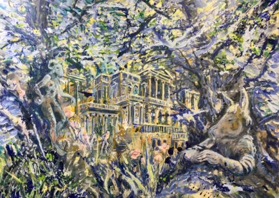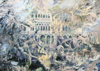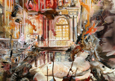 Dans son œuvre, il explore des plans de réalités parallèles comme sujet pictural. Ses compositions abolissent volontairement la séparation stricte entre figuration et abstraction. Éléments architecturaux et figures dialoguent avec formes abstraites et dégradés colorés. Les compositions complexes et stratifiées demeurent volontairement polysémiques et énigmatiques.